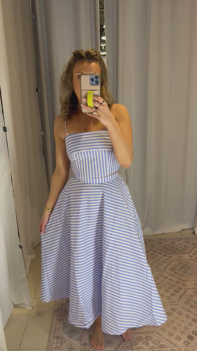 STRIPED CROP TOP AND A-LINE MIDI SKIRT SET